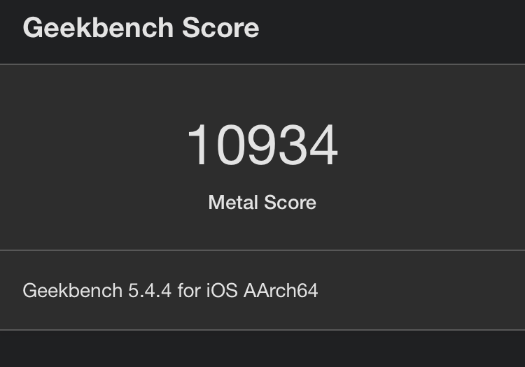 싱글코어 1731점, 멀티코어 4704점, 그리고 Metal은 10934점.