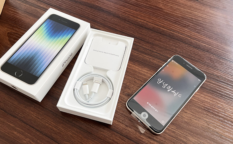 이번 아이폰SE3 부터는 앞면은 블랙으로 통일되었다.