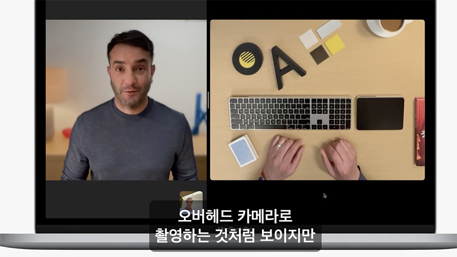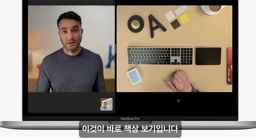책상보기라는 기능을 선보이니까 어느정도 고개가 끄덕여지네요. 이제 맥북 스크린 뒤쪽에 아이폰을 거치하는 악세사리가 쏟아져나올 것 같습니다. 거기에 아이폰을 부착해두고, 항공샷으로 무언가 찍을 수 있을 테니까요. 실용성이 있을지 없을지 아직은 잘 모르겠지만... 정말 모니터 스크린 윗쪽에 아이폰을 걸어두는 것이 자연스러워질지... ㅎㅎ
