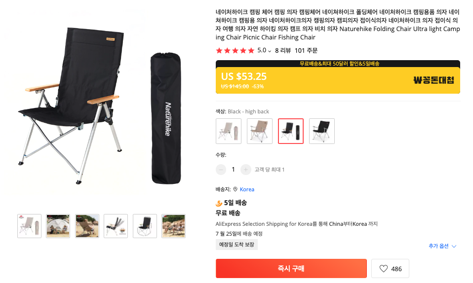 요것도 캠핑을 좋아하신다면 필수 아이템이죠. 네이처하이크 폴딩체어 입니다. :)