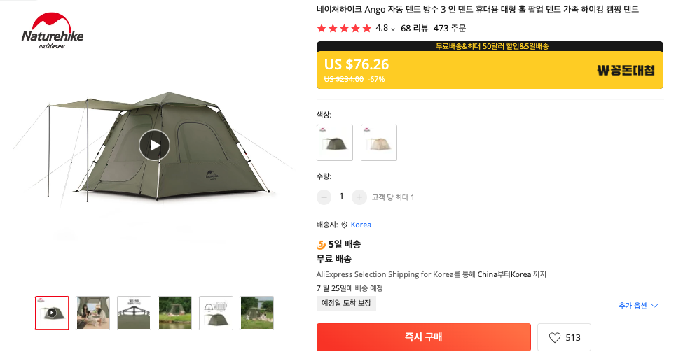 마침 알리익스프레스에서도 캠핑용품을 많이 할인하고 있고, 2022년 7월 18일 부터 7월 23일 오후 4시까지 할인 추천 상품들이 올라왔길래 제가 이번에 살 충전기 IT용품들... 그리고 인기 있는 네이처하이크 캠핑 용품 등 파격할인이 들어간 제품들을 추천해봅니다.