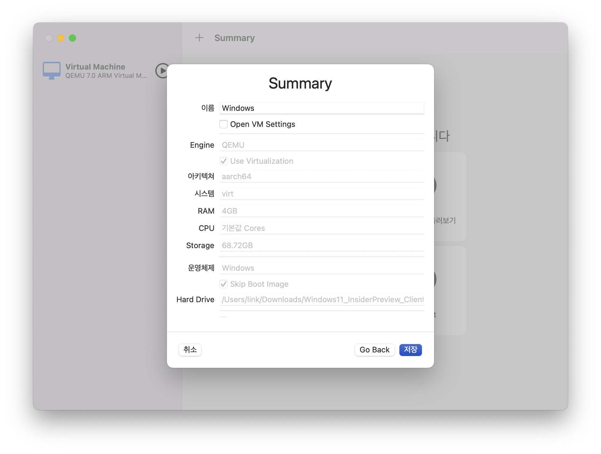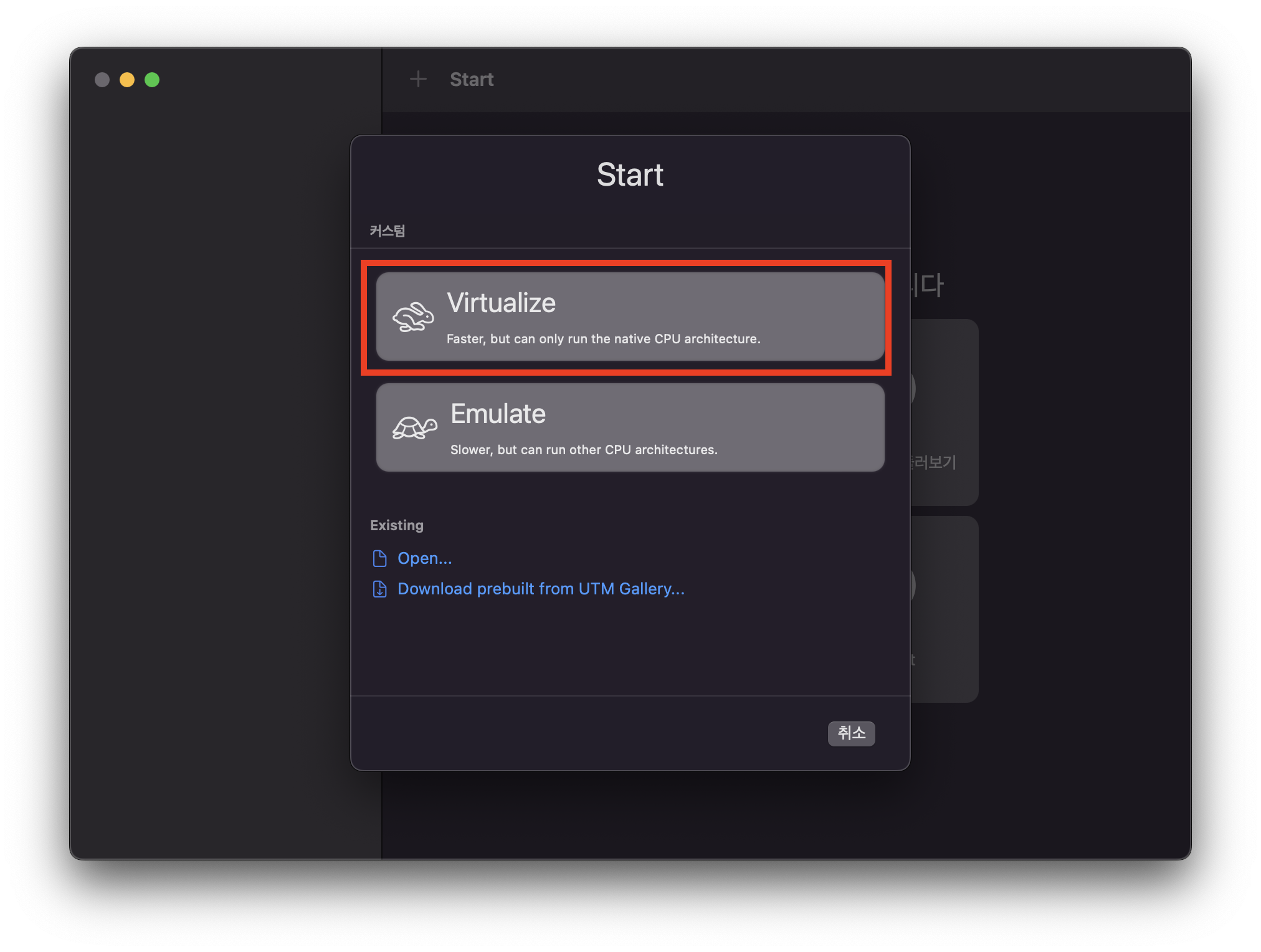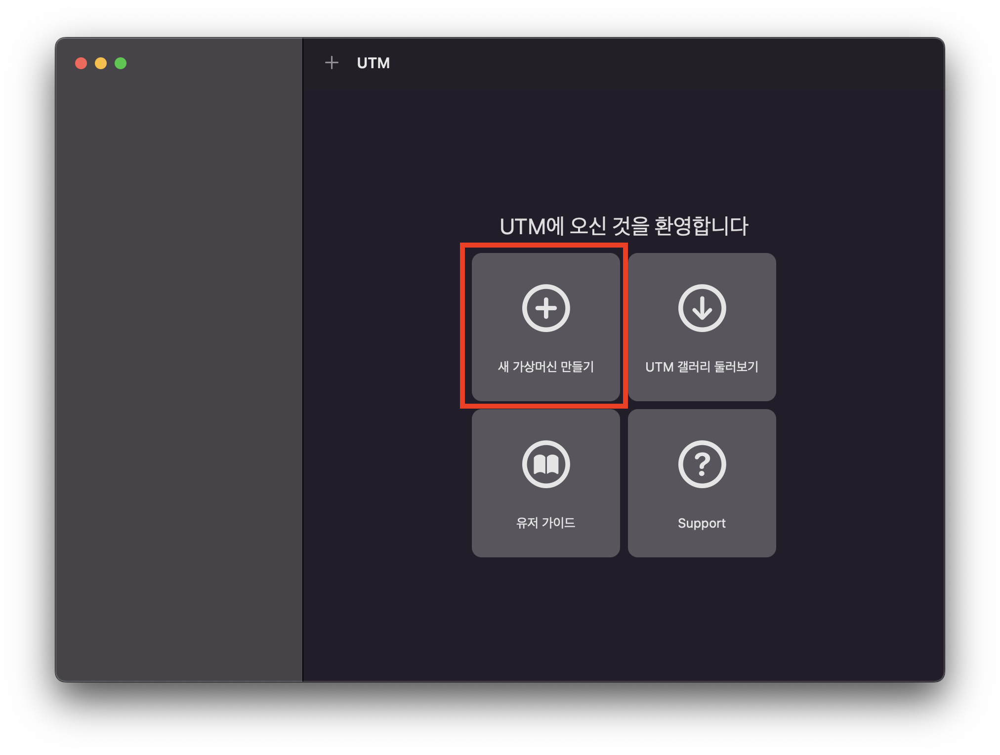 일단 UTM를 다운로드 받고 설치를 합니다. 그리고 실행을 하면..
