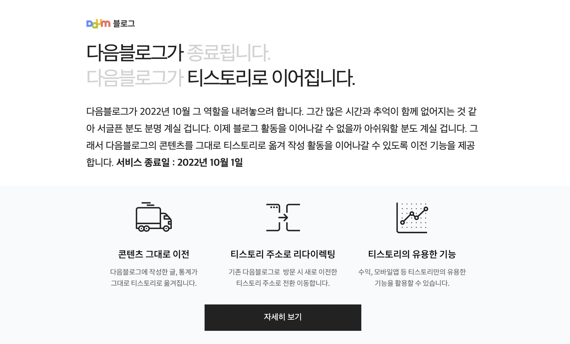 다음 블로그 서비스 종료 티스토리로 2022년 9월까지 이사하세요