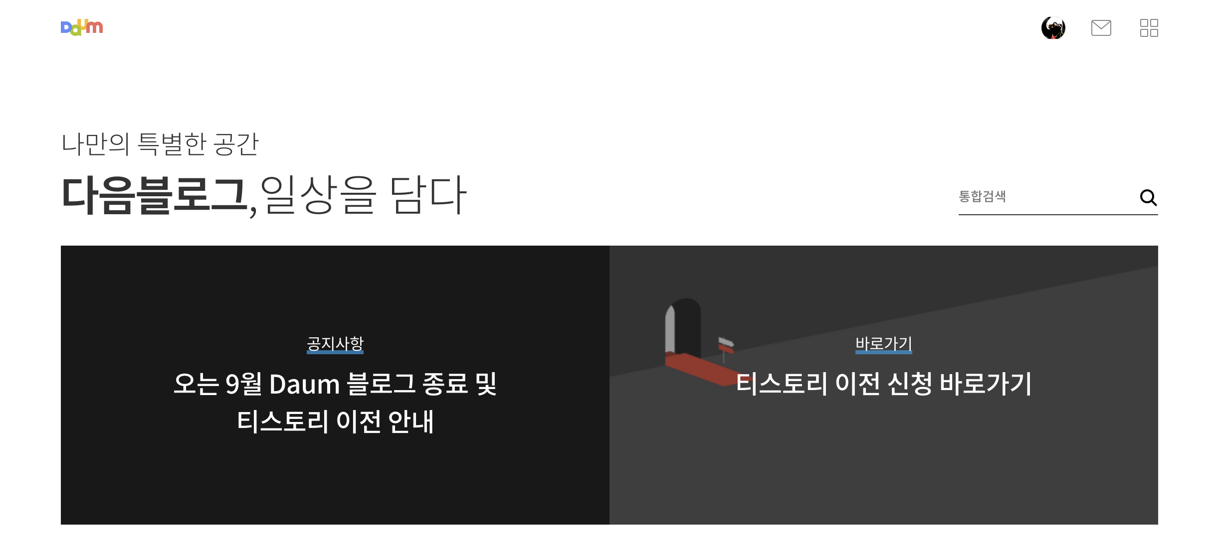 정확히는 9월 말까지 티스토리 이전을 할 예정인가 보내요. 서비스 종료 공지가 7월에 뜬 것을 생각해보면 6개월도 채 안되는 시간이라 조금 빠른 듯도 합니다. 어찌되었든, 이제 또 하나의 다음 서비스가 막을 내리게 되는군요..
