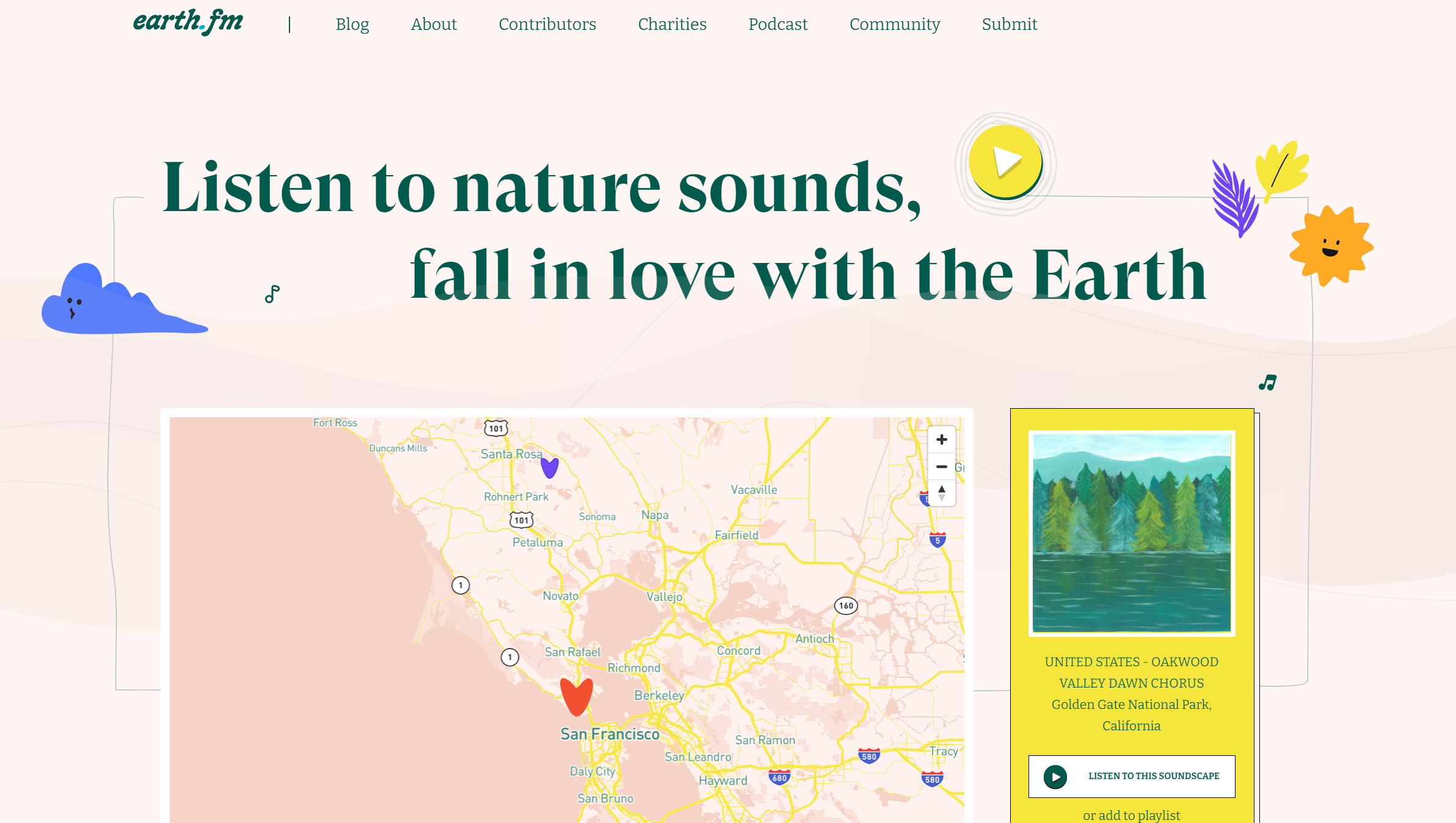 오늘 소개해드릴 사이트는 전세계 자연의 소리를 들을 수 있는 화이트노이즈 사이트 earth.fm 인데요.