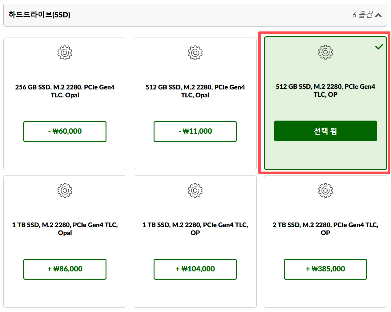 그럼 여기서 부터 원하는 사양으로 업글을 해서 구입할 수 있는데요. 이렇게 구입하는 것을 주문제작 또는 CTO 모델이라고 하죠. ㅎㅎ