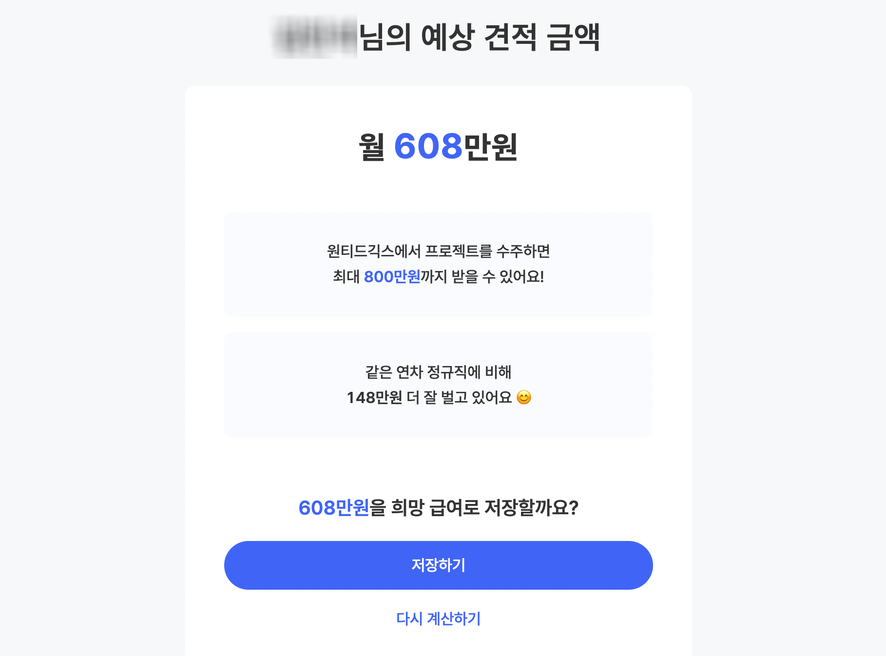 원티드 긱스에서 프리랜서 견적 금액을 계산해볼 수 있어 입력을 해보았다.