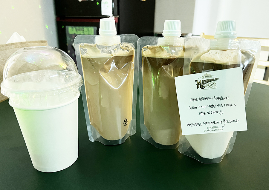 요렇게 3잔을 배달시켜 먹었습니다. 커피도 배달시켜 먹는 시대, 다른 곳은 돈이 아까울 수도 있겠진만 카페 멘덜리만큼 퀄리티 좋은 바닐라빈 라떼는 다른 곳에서 맛보기 어렵기에 즐겁게 마신 것 같네요 :)