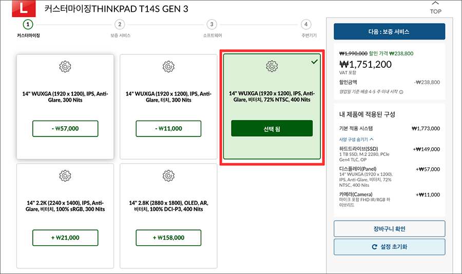 그럼 ThinkPad T14s Gen3 세대 모델 커스터마이징 주문제작을 해보는 방법, 그리고 쿠폰코드를 입력해서 할인을 받는 법을 간략하게 소개해보겠습니다.