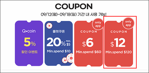 참고로 큐텐에서 아이폰14 홍콩판을 구입하실 때는 상품 설명 바로 밑에 항상 뜨는 120$ 이상 구입시 12$ 할인 모바일 전용 쿠폰을 다운로드 받아두고, PC에서 장바구니에 넣어둔 다음, 결제를 할 때 모바일 앱을 통해 주문을 하면 특별 쿠폰 할인 적용을 할 수 있으니 참고하시구요.