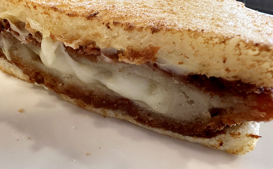 안에 치즈 포크 커틀렛이 들어있습니다. 쉽게 말하면 돈까스 샌드위치 입니다.