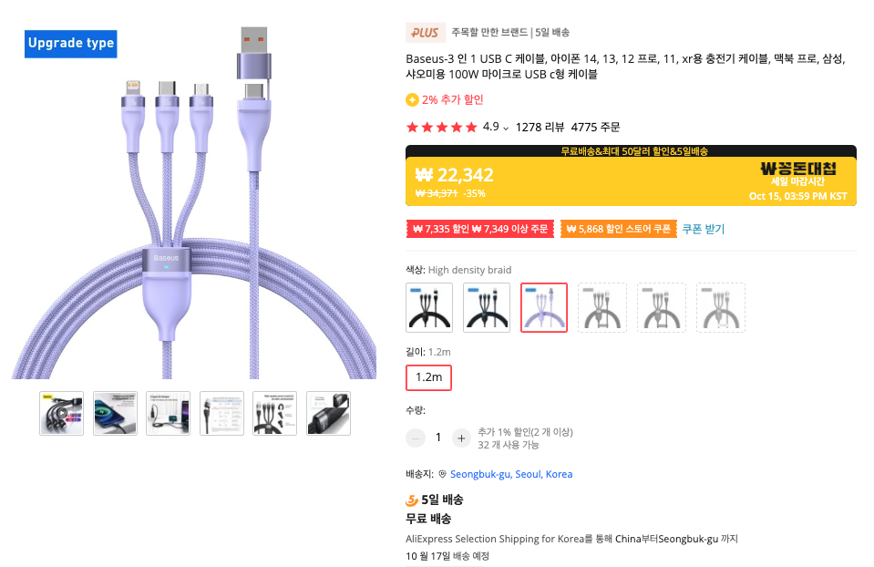 :: 베이스어스 6in1 멀티 충전 케이블 구입하러 바로가기 ::