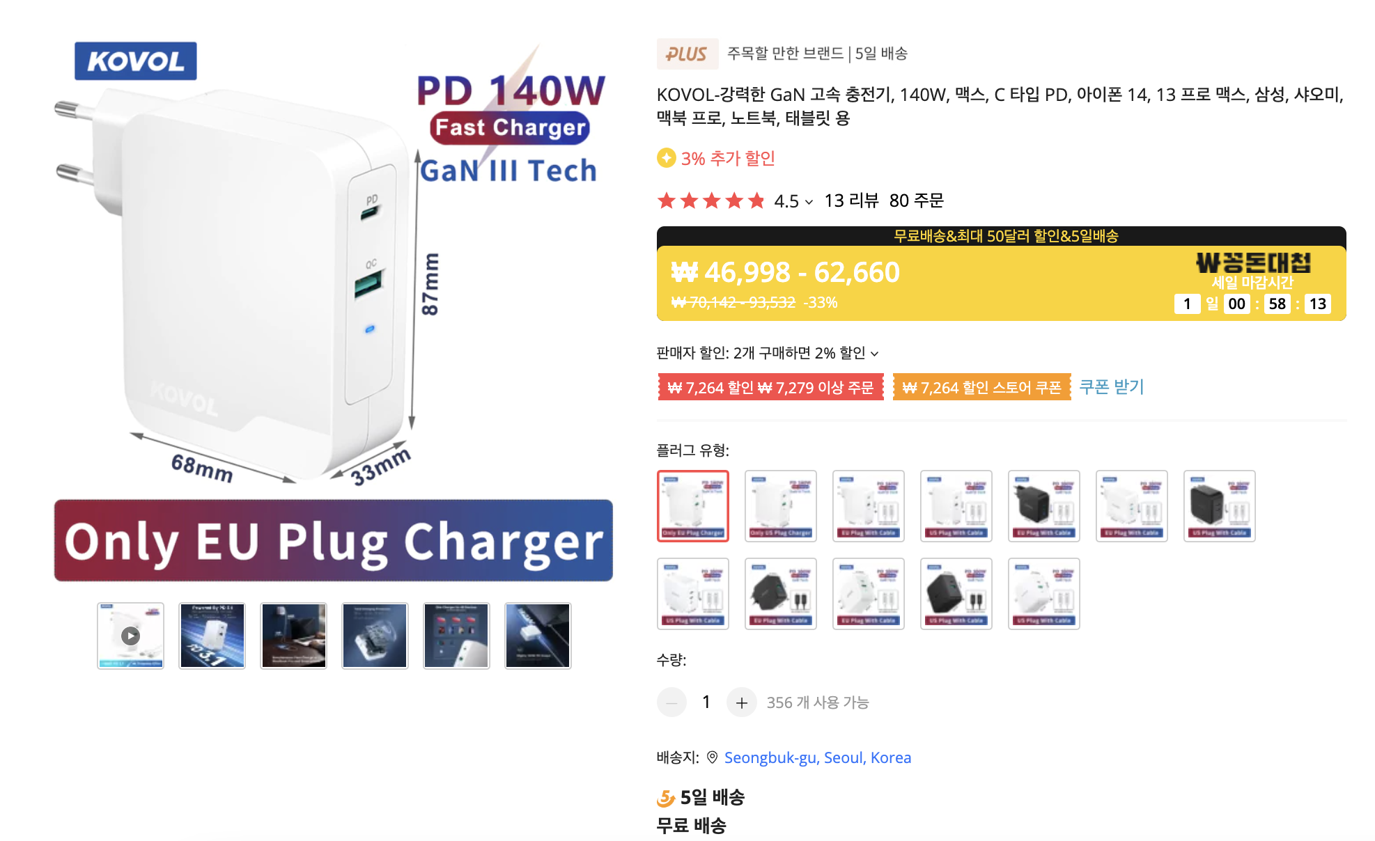 :: 140W USB PD 코볼 충전기 구입하러 바로가기 ::