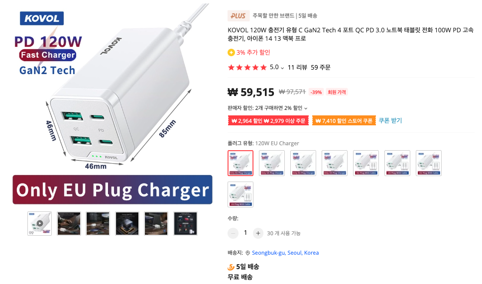 :: 코볼 멀티포트 120W USB 충전기 구입하러 바로가기 ::