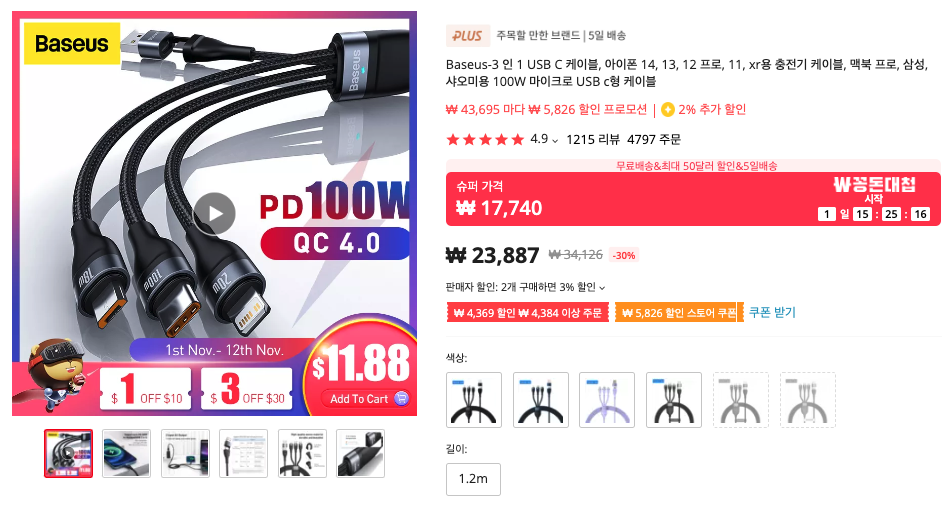 광군제 11월 11일은 이제 유명해진 것 같습니다. 올해에도 알리익스프레스에서 대대적으로 할인 이벤트를 하더군요.