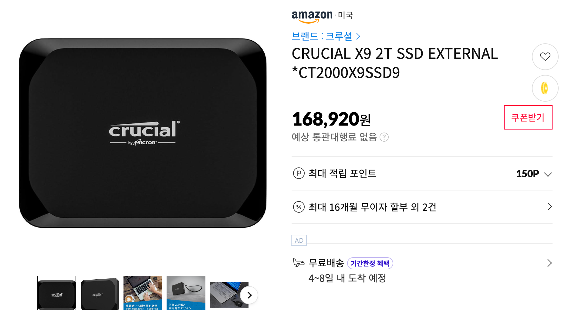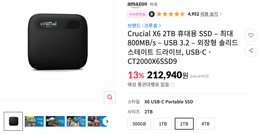 빠른 SSD 외장하드이면서, 2TB라는 용량이 욕심난다면 구입할 수 있는 크루셜 X6 2TB 모델입니다. 외장 SSD가 2TB인데 이 정도라면 정말 좋은 가격이네요. 외장하드, 또는 외장SSD 스토리지가 필요했던 분들에게 적극 추천해봅니다. :)