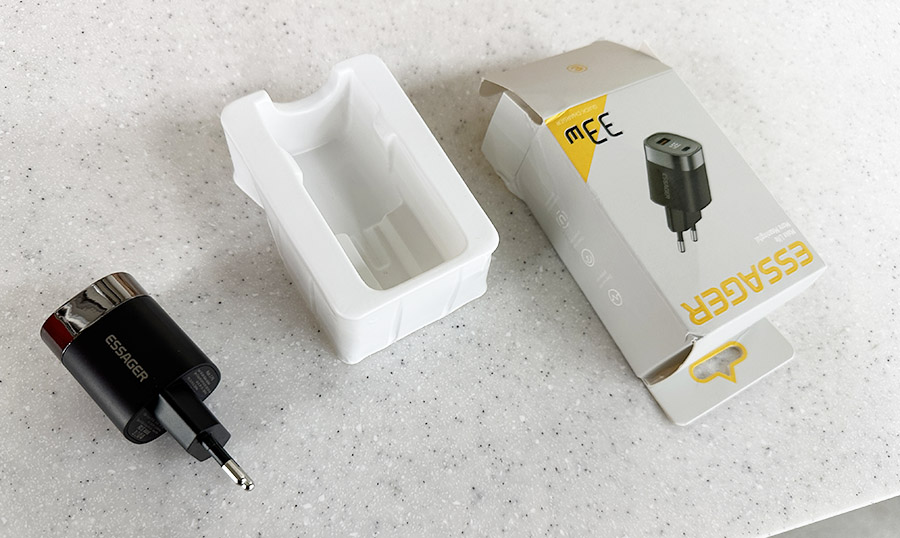 일반 스마트폰의 고속충전이 가능하고 크기가 매우 작은 GaN 충전 어댑터이면서 USB PD 규격이기에 비상시에는 맥북프로도 저속으로 충전할 수 있기에 매우 좋은 것 같습니다.