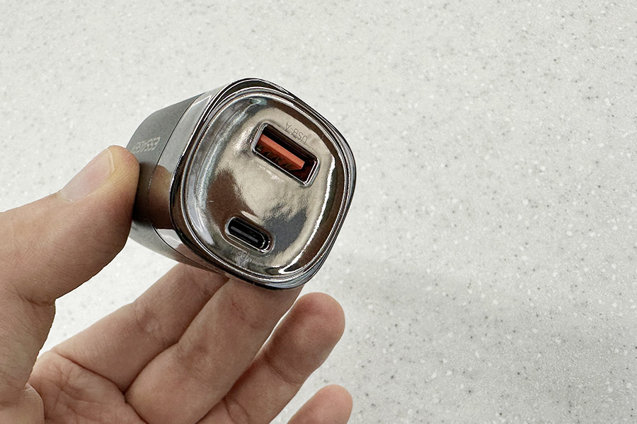 겉 표면은 크로미움처럼 반짝 거리게 되어 있고, 처음 제품을 뜯으면 보호필름이 부착되어 있습니다. USB-A 퀄컴 퀵차지 그리고 USB-C USB PD를 지원합니다.