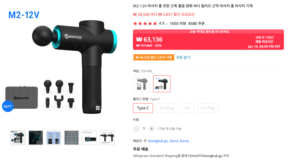 이번에 저는 부스터 마사지건, 그리고 맥북에어도 충전할 수 있는 GaN 충전기인 33W Essager 충전기, 그리고 QCY 이어폰을 구입했습니다.