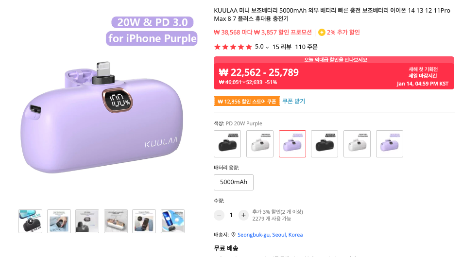 KUULLA 아이폰용 미니 보조배터리 5000mAh