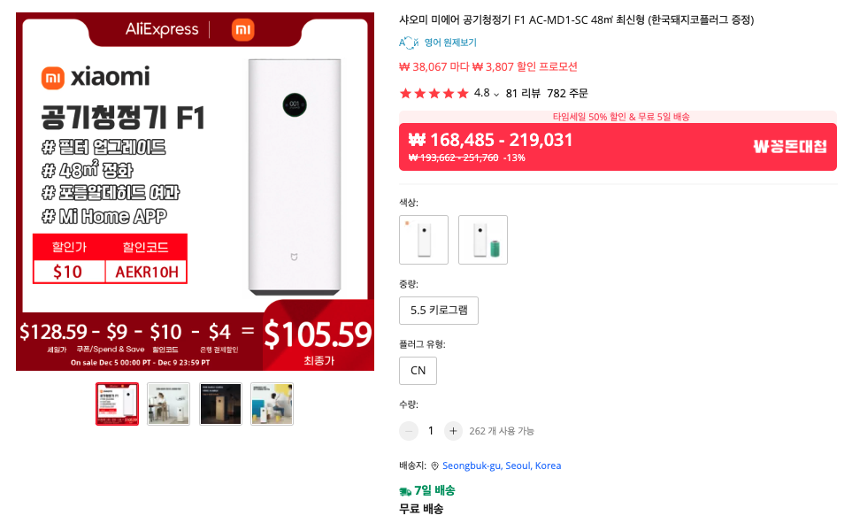 알리 익스프레스 할인 이벤트 1월 쿠폰코드 샤오미 공기청정기 F1, 16인치 제우스랩 휴대용 모니터 추천템 정리