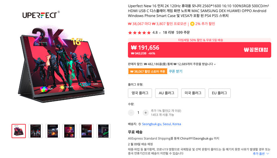 역시 최근 인기를 얻고 있는 유퍼펙트의 휴대용 모니터 입니다. 보조 모니터가 필요한 분들께는 좋은 아이템이 될 것 같네요.
