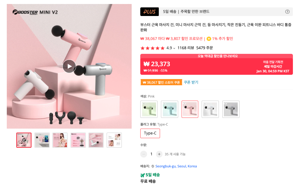 특별한 설명이 필요없을 정도로 가성비가 좋은 부스터 마사지건 입니다.