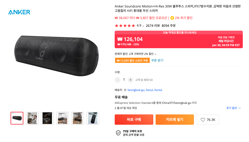 음질에 반해서 2개를 구입하게 된다는 앤커의 Soundcore Motion+ 스피커 입니다. 할인할때 구입해두면 든든한 아이템이죠.