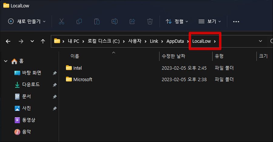 AppData 폴더로 들어간 뒤, LocalLow 폴더를 찾아 들어갑니다.