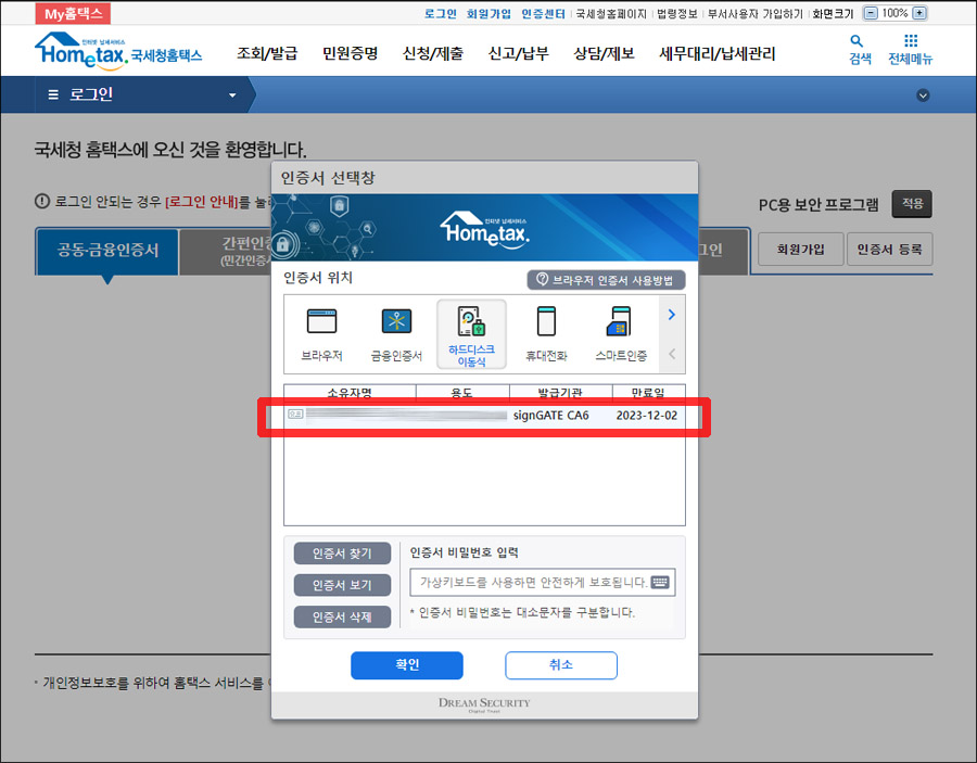 이렇게 은행이나 홈텍스 홈페이지, 또는 세금계산서 서비스 웹사이트에서 공동인증서를 다시 사용할 수 있습니다. :)