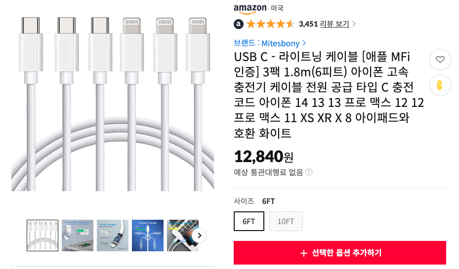 MFI 인증 케이블은 1개당 만원이 넘을 떄가 많은데, 이 제품은 MFI 인증 케이블임에도 불구하고 3개의 12,000원대에 구입할 수 있어 가성비가 매우 좋은 것 같습니다. (물론 11번가 아마존에서는 구입 물품 가격을 조금 더 넘겨야 무료배송이 가능하지만, 다른 물건을 같이 살때 껴서 같이 사면 좋을 것 같네요)