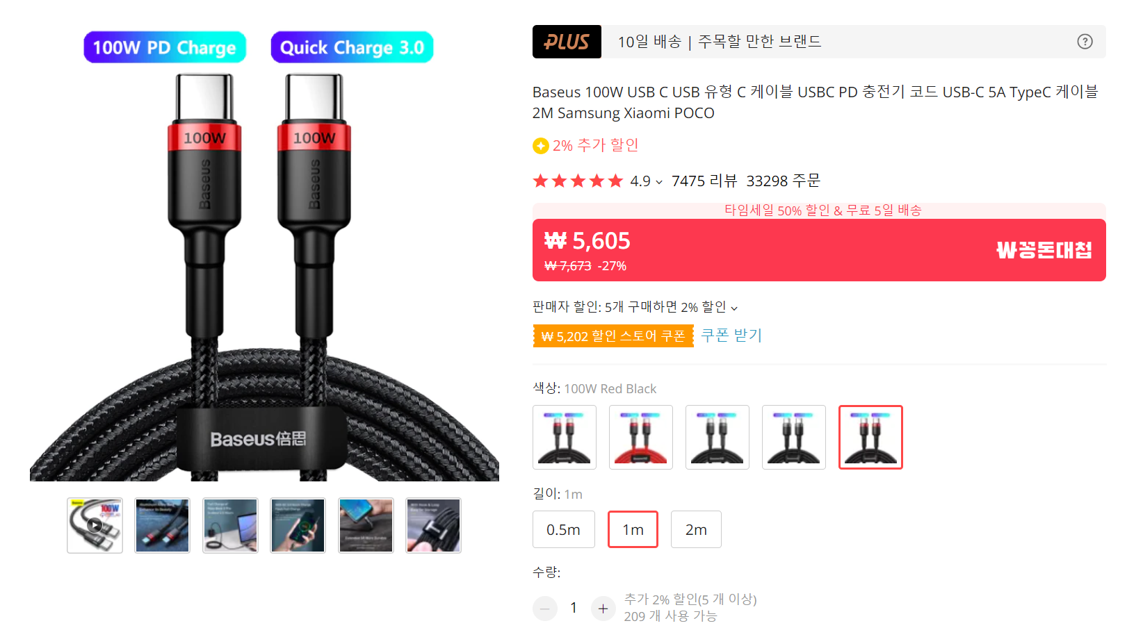 가성비가 극강이라고 알려진 Baseus USB 케이블입니다. 커피 한잔 값으로 품질 좋은 충전 및 연결케이블을 쓸 수 있어서 좋습니다. 알리에서 여러가지 사다가 가격을 맞추기도 참 좋은 제품이구요. 저도 6~7개쯤 구입해서 지인들에게 나눠주기도 하는 아이템입니다.