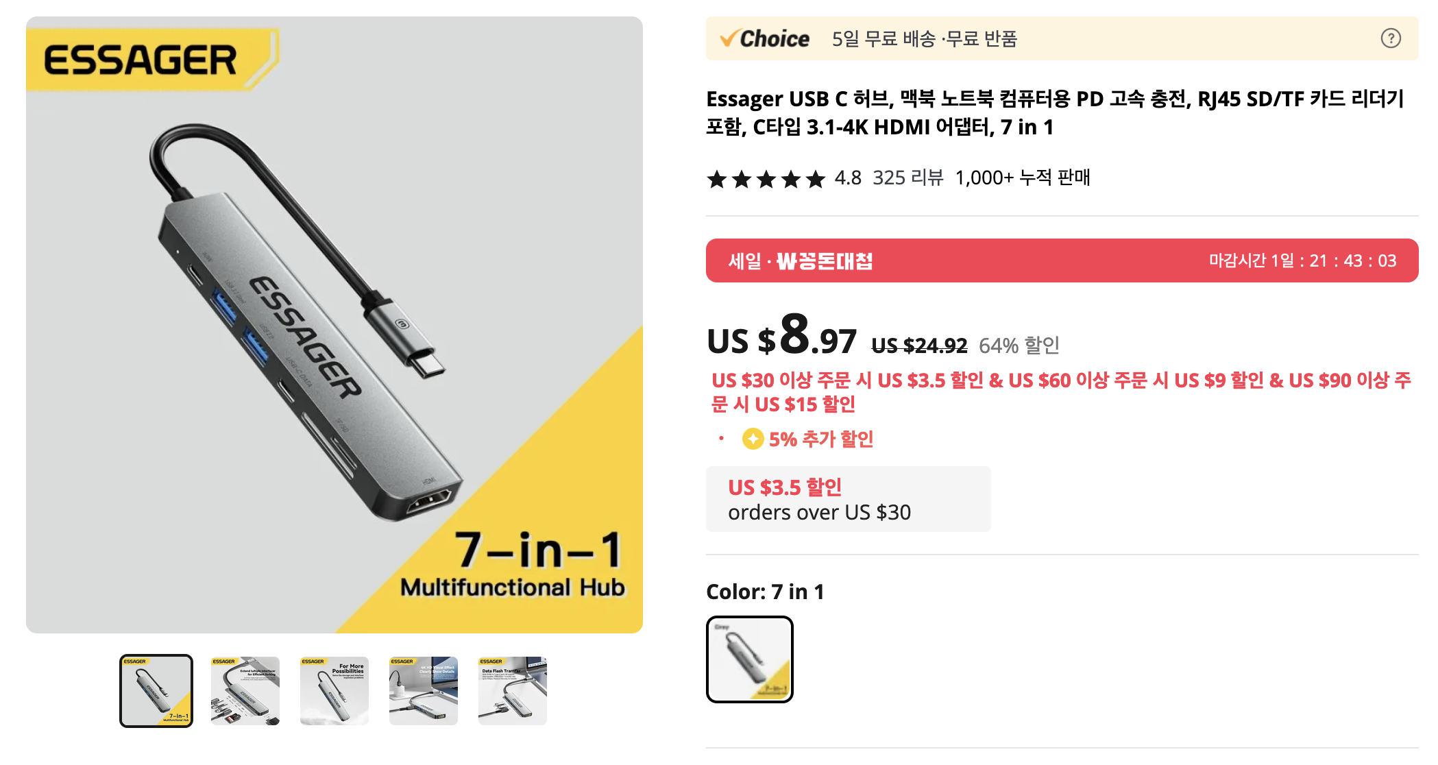 맥북을 사용하고 있고, 주변기기를 연결해야 하는 다양한 I/O 포트가 필요하다면 구입해볼만한 에세저 USB-C 허브 입니다. 간단하면서도 필요한 것은 다 있어서 유용해보이네요.