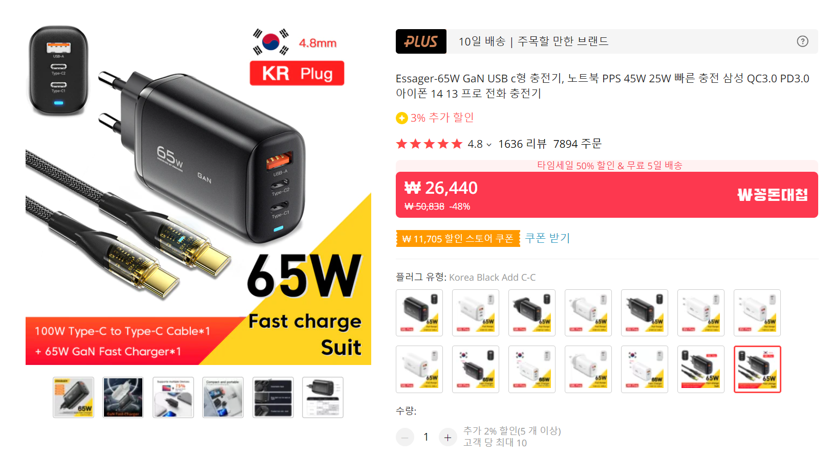 최근 이 Essager 65W GaN 충전기는 알리에서 꼭 사야할 품목중에 하나 있것 같습니다. EU 플러그가 아니라 한국에 딱 맞는 플러그라서 그런지 더욱 인기가 있네요.