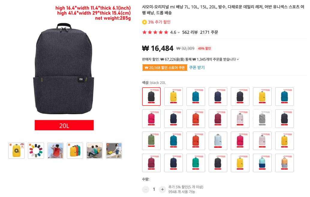 가벼운 샤오미 경량 가방입니다. 저는 20L짜리를 사용하고 있는데, 인생 가방이라고 할 정도로 품질이 괜찮습니다. 비싼 가방일수록 무거워서 들고다니기 불편한데, 샤오미 경량 백팩은 가격에 비해 품질이 좋고, 가방 자체가 가벼워서 부담이 없더군요. 기본에 충실한 제품이라고 할까요? ㅎㅎ