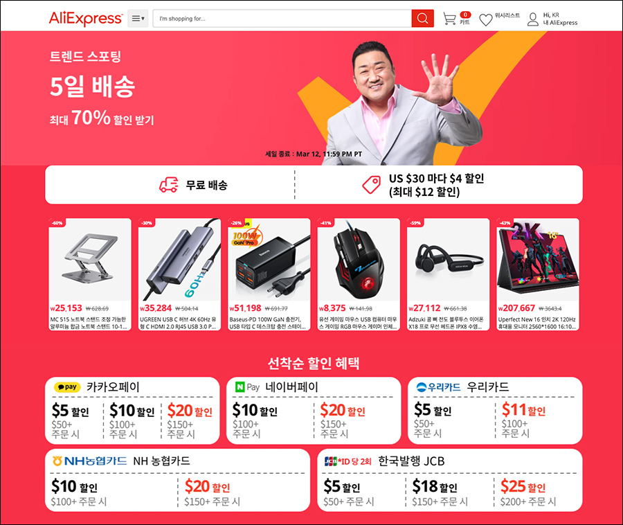 여담이지만 흥미롭게도 마동석이 알리익스프레스 모델로 나와있네요. 신기 ㅎㅎ