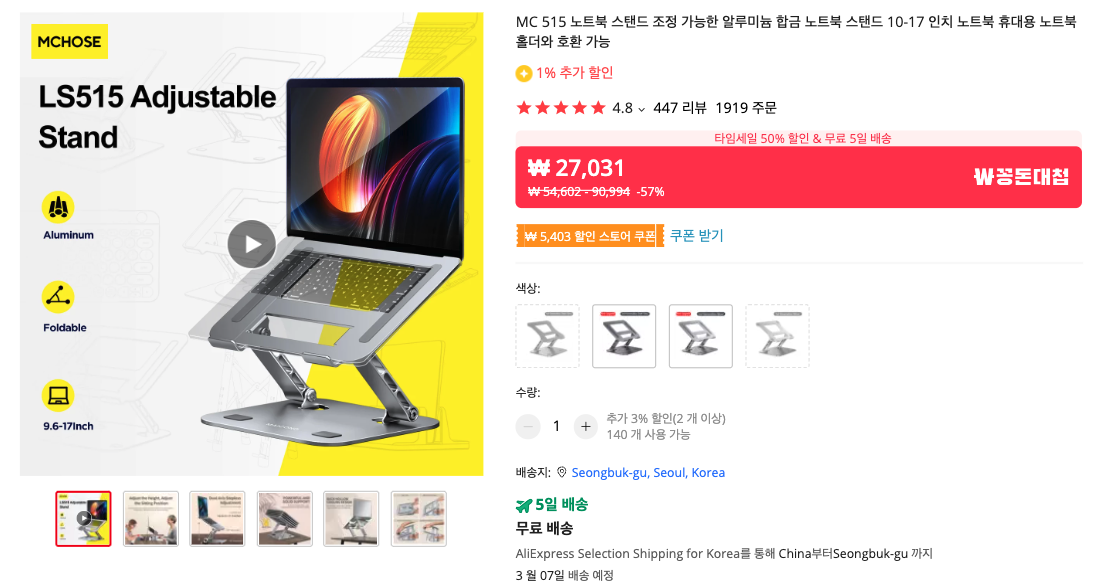 노트북을 거치해두기 좋은 거치대 입니다. 품질이 좋기로 소문나 있더군요. 이 제품도 이번 직구 세일 기간에 구입해보시면 좋을 것 같습니다.