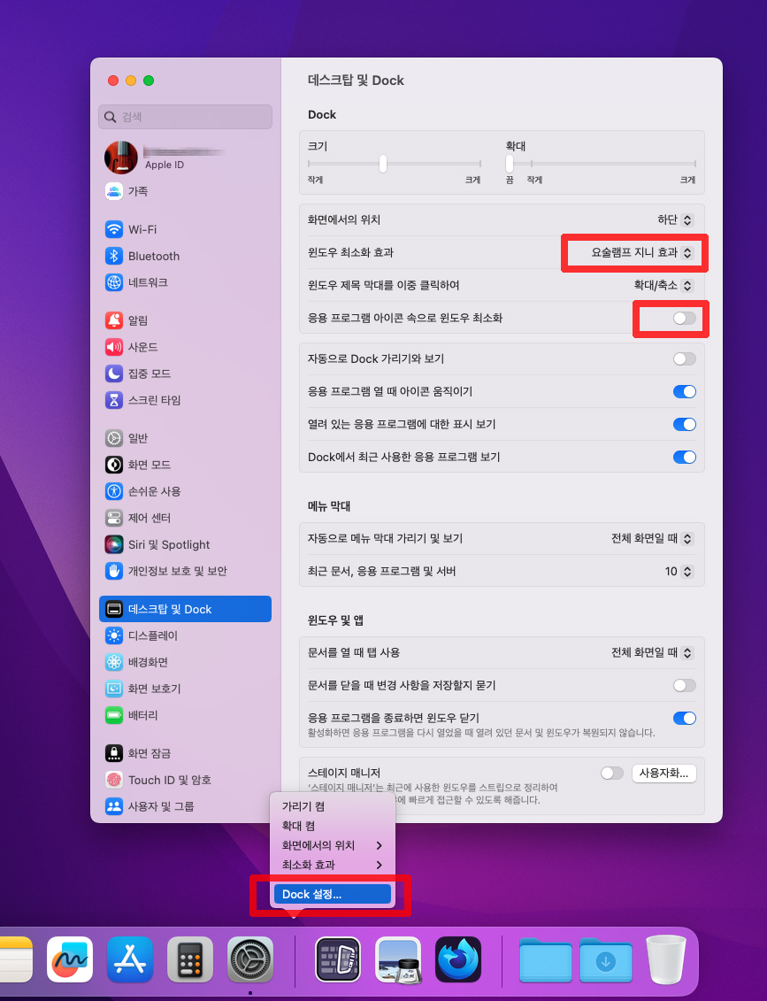 맥 독바 Dock Bar 최소화 효과 방식 변경하기