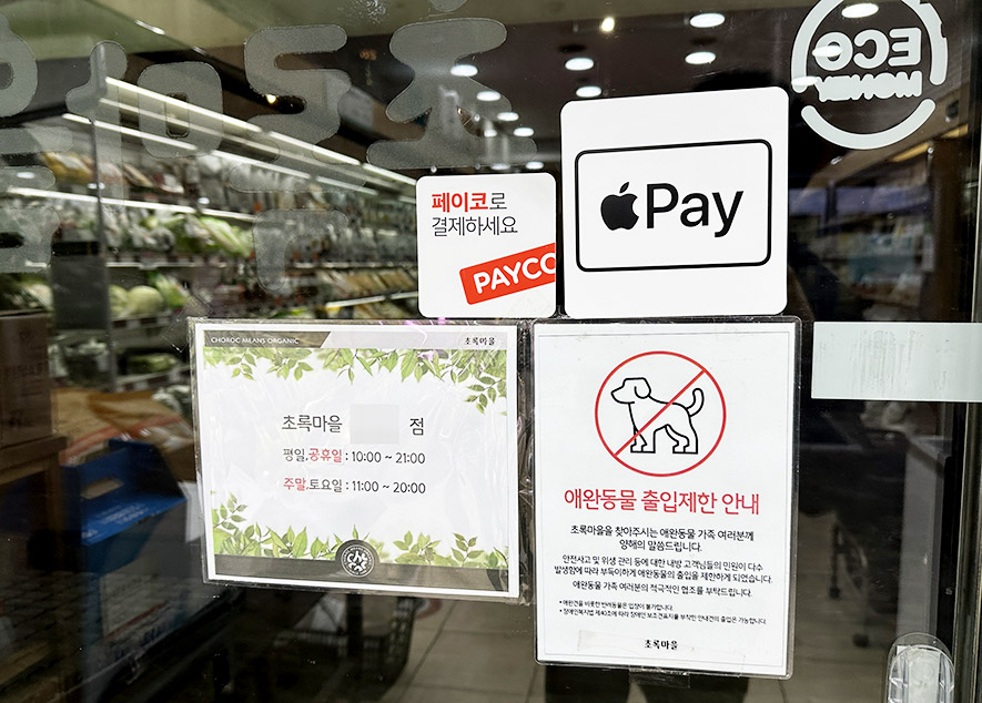 오늘 동네 근처에 있는 채소가게 매장에 갔는데, 애플페이가 된다는 것을 연상시키는 사과로고와 함께 Pay라는 스티커가 붙어 있더군요 ^^