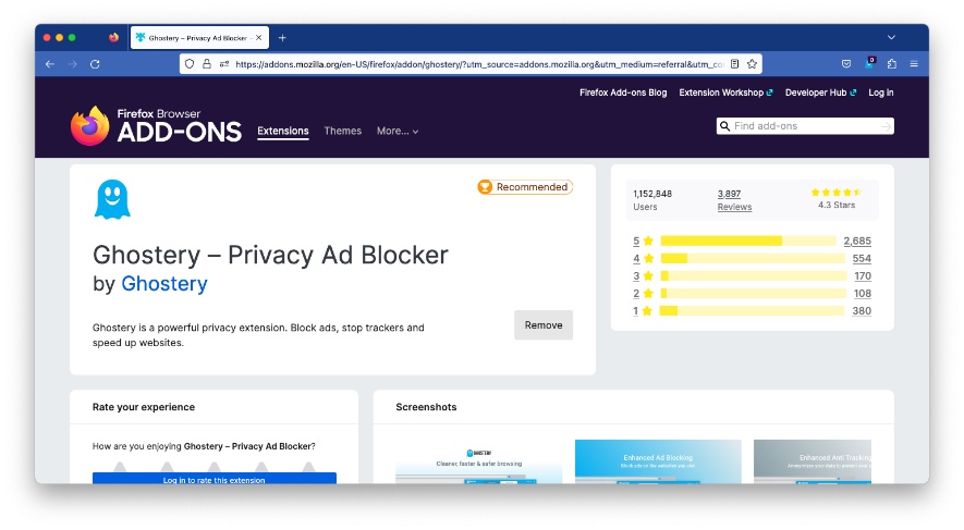 오늘은 고스트리 (Ghostery)라는 Extension 부가기능을 소개해봅니다. 저는 파이어폭스에 적용해보았는데요. 크롬이나 사파리, 엣지 브라우저용도 있습니다.
