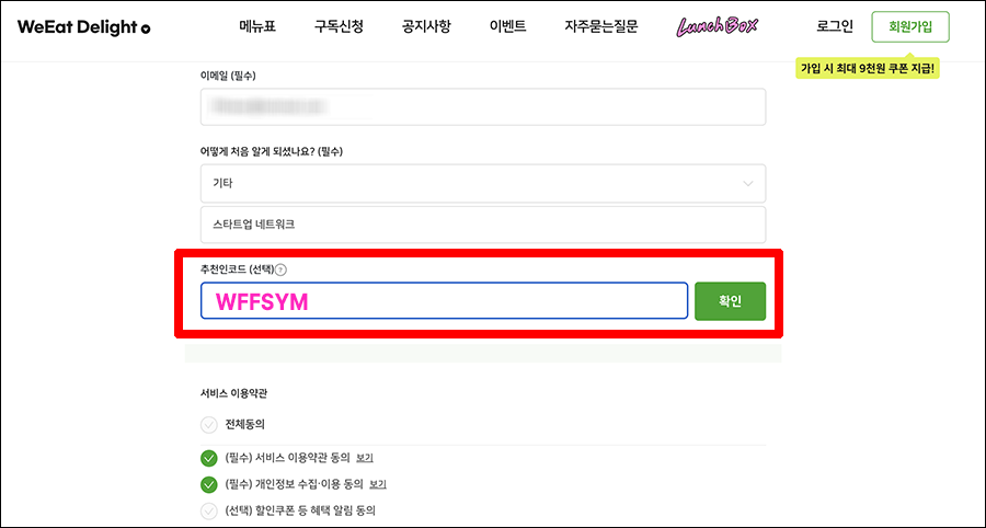위잇딜라이트 점심구독 추천인코드 공유: WFFSYM