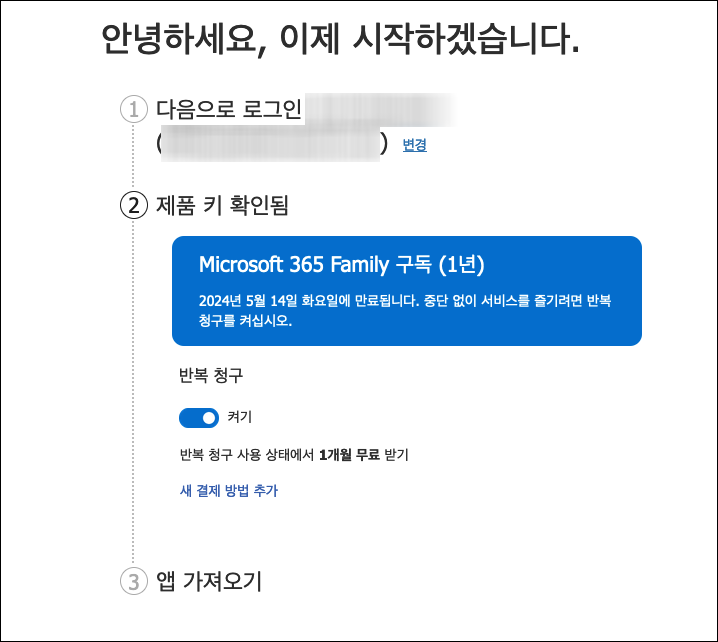 이 구독 방식 중에서는 1년마다 자동으로 결제되게 하면 제일 저렴할 것 같지만... 사실을 1년마다 구독이 만료되기 전에 자동 구독을 해지시켜 놓고, 한 3일 정도 버티다가... 오픈마켓에서 ESD 상품을 구입하는 것이 가장 저렴합니다.