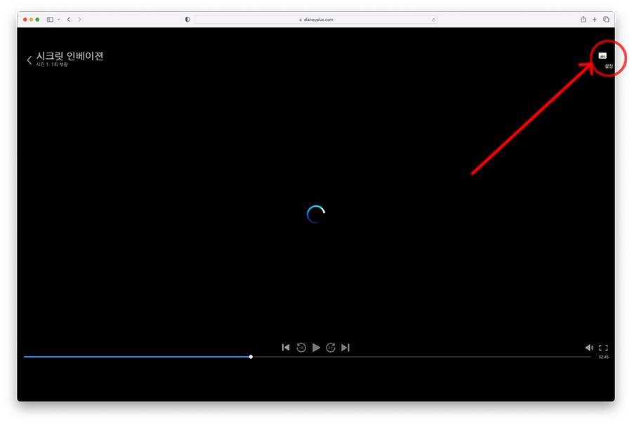 가장 먼저 디즈니 플러스에서 영상을 플레이 하는 도중 우측 상단을 보시면...