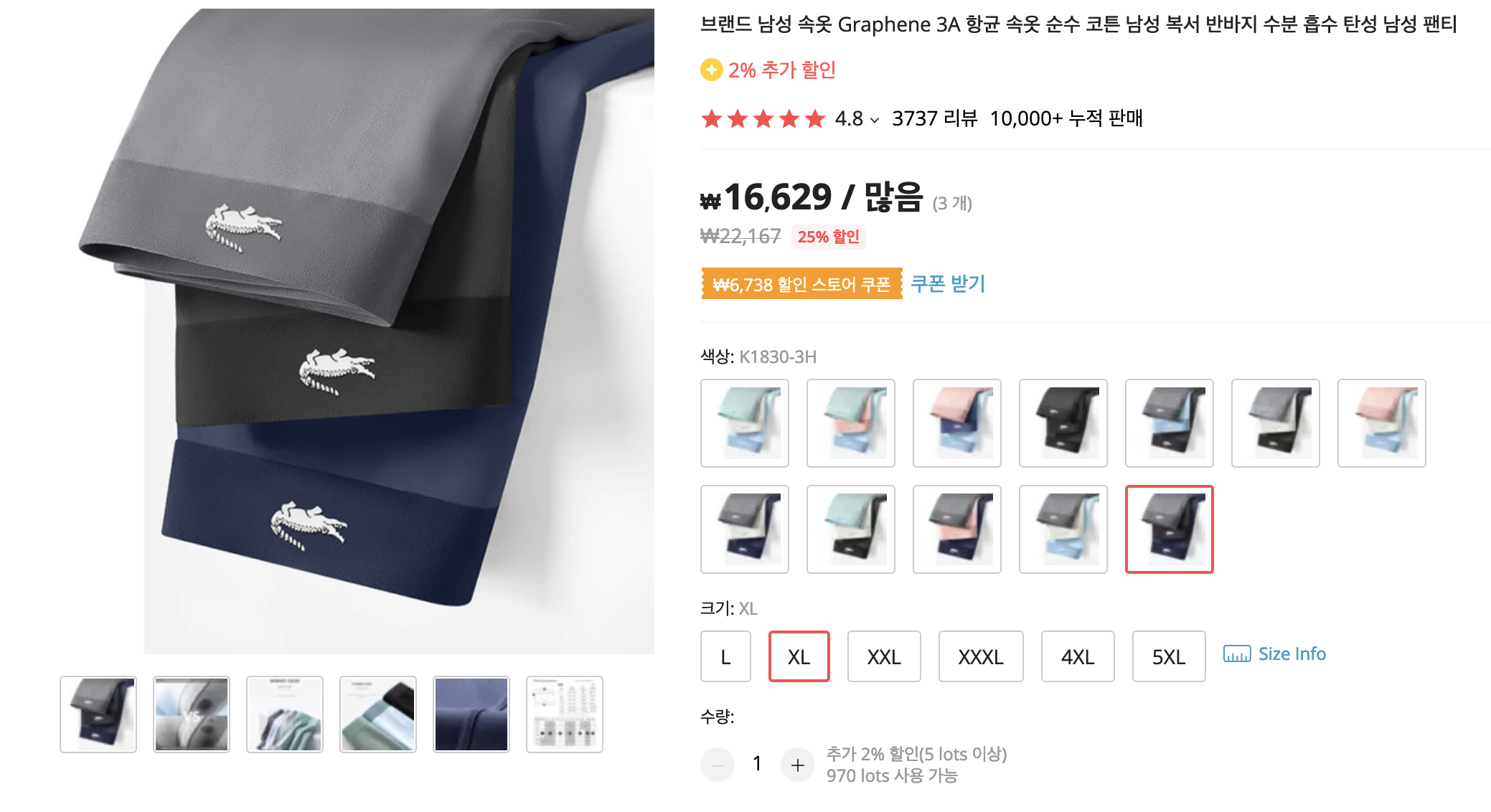 후기 좋기로 소문난 브랜드 남성 속옷 입니다. ㅎㅎ 3개 세트로 들어있는데 가성비, 가심비 모두 탁월하다고 하네요. :)