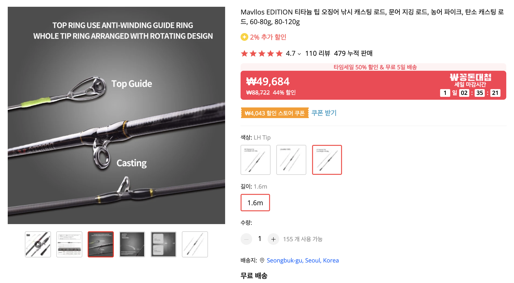 오징어나 문어 낚시용으로 쓰이는 Mavillos 낚시대 입니다. 낚시꾼들 사이에서는 소문난 제품인 것 같네요.