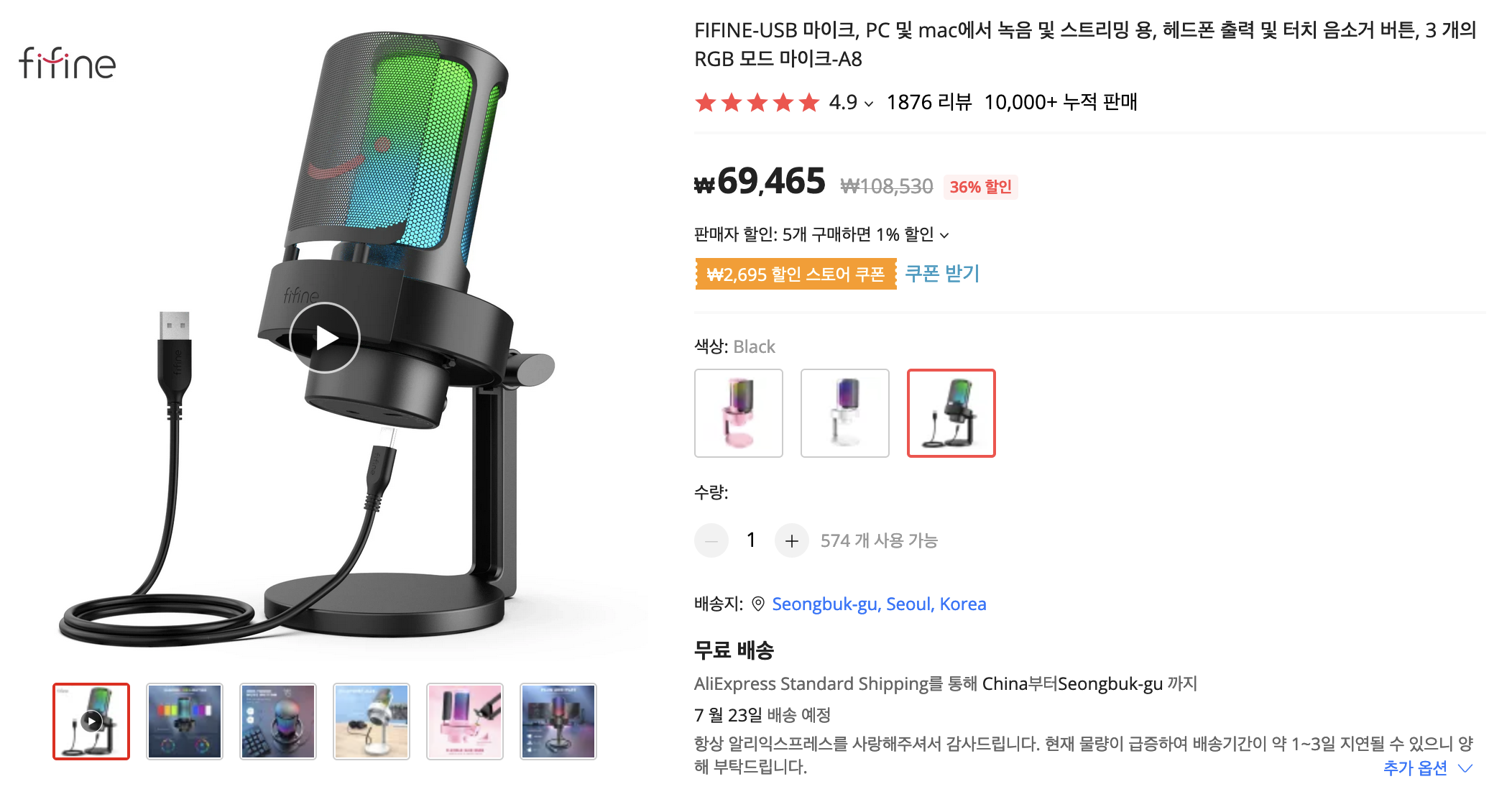 1인 방송을 하는 크리에이터가 되고 싶으시면 쓸만한 FIFINE 마이크 입니다. 구성이 훌륭하다고 하네요.