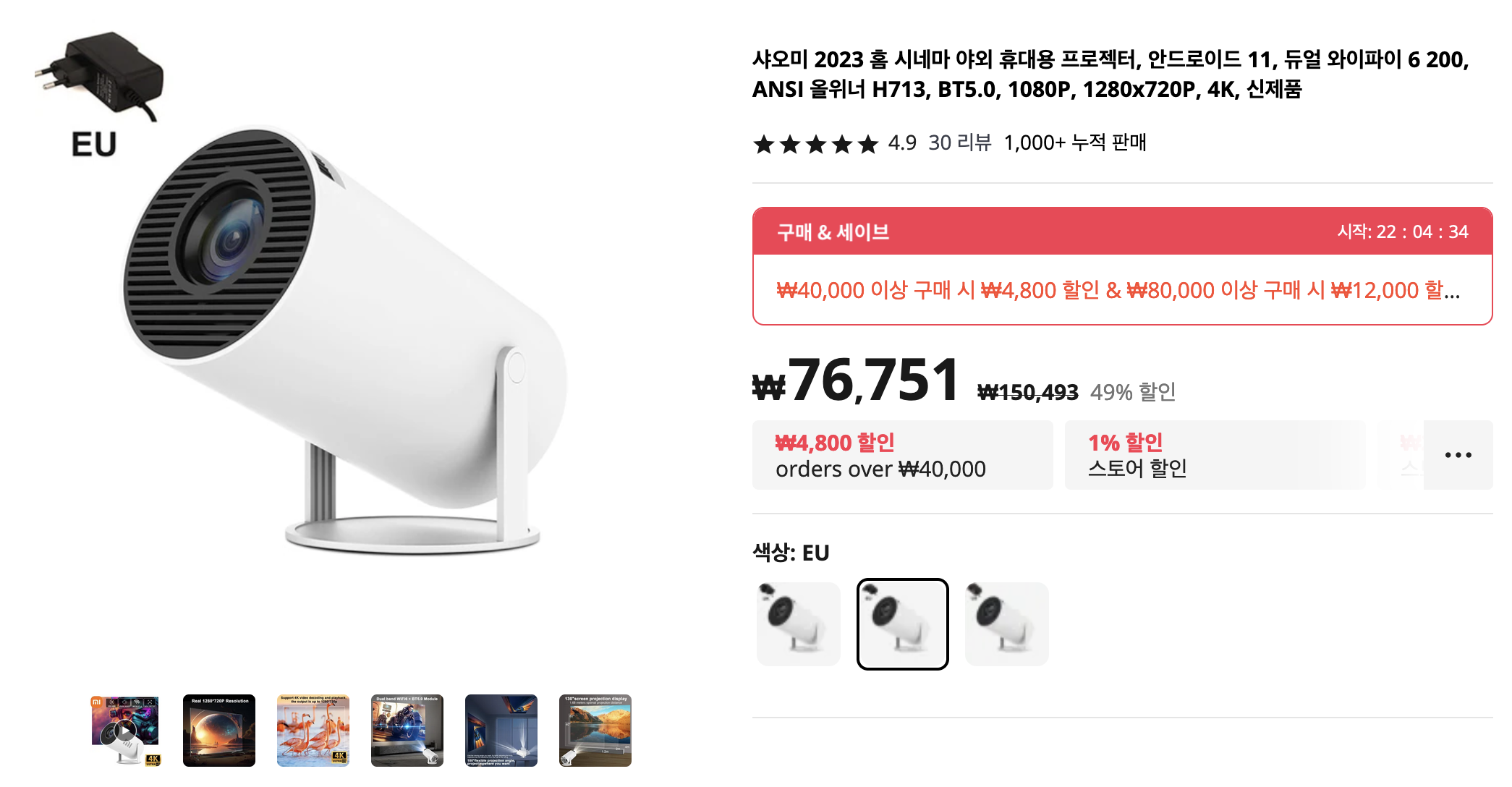 최근 가장 핫한 샤오미 빔 프로젝터 입니다. 집에서 넷플릭스 영화관 분위기를 내어보세요 :)