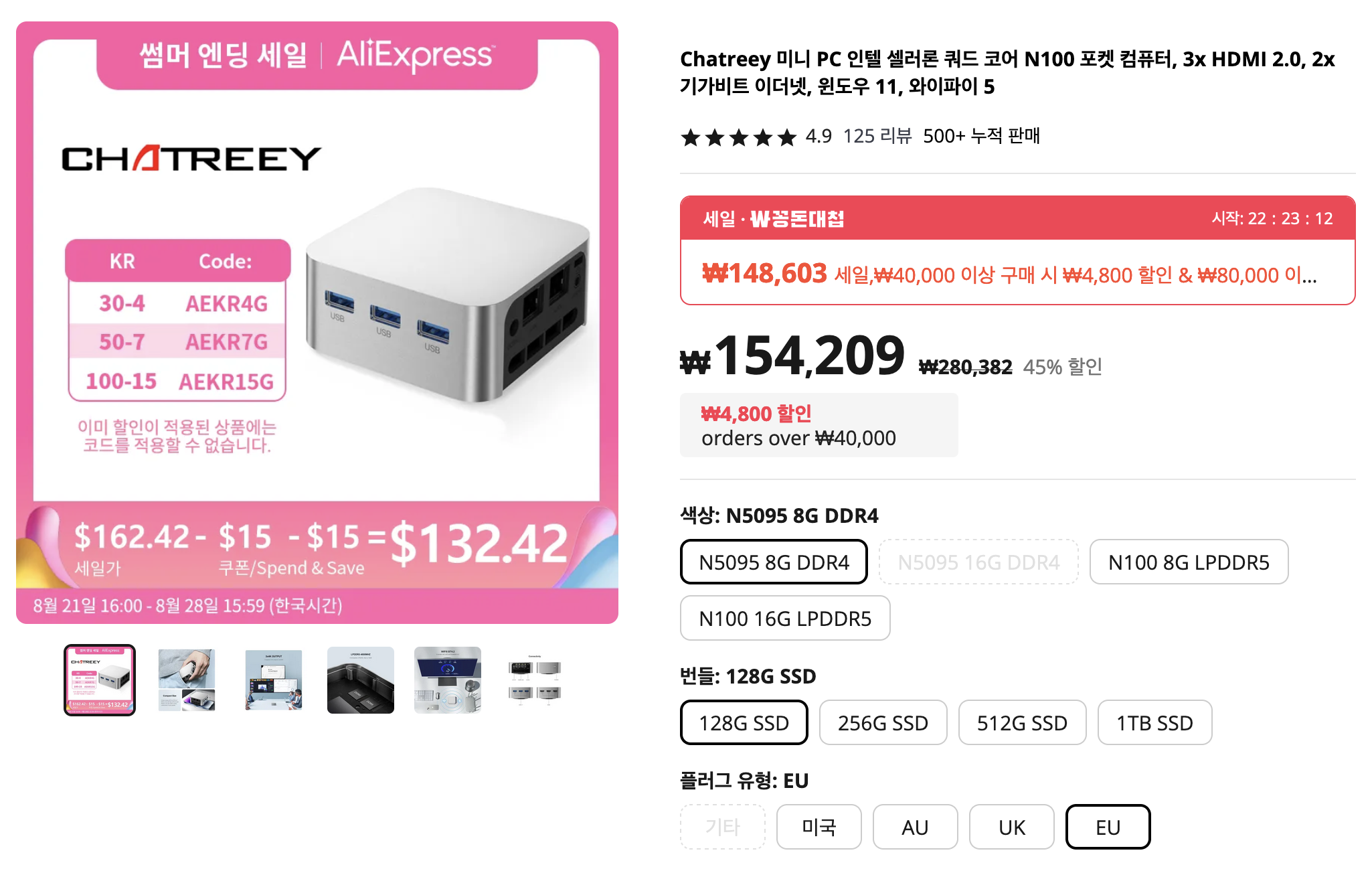 사무용으로 사용할 컴퓨터가 필요하다면 꼭 미니PC를 구입해보세요. 요즘 성능 정말 좋게 잘 나옵니다. EU 플러그를 선택하시면 됩니다.