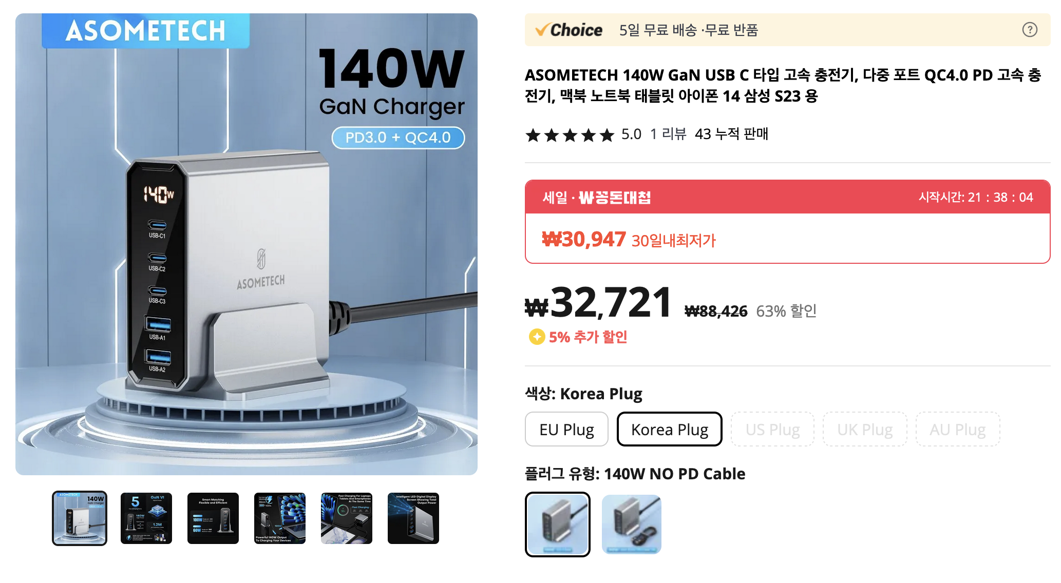 집에서 USB PD로 충전되는 노트북, 고속 충전 지원을 하는 스마트폰과 태블릿, 아이패드 등 3~4개의 USB 충전 기기들을 사용하신다면 구입해볼만한 멋진 멀티 충전기 입니다. 충전 W수가 출력이 되어서 더욱 쓸만하죠.