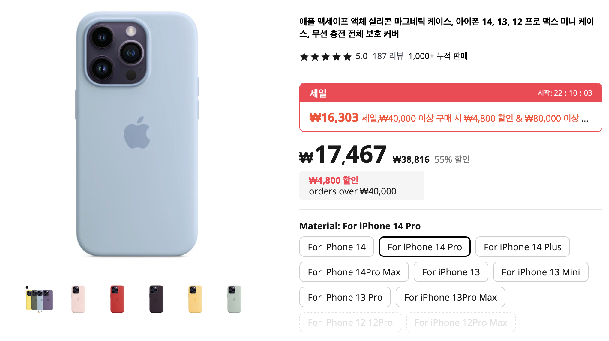 정품보다 더 정품 같은 아이폰 케이스죠. 살짝 비싸보이는 이유는 맥세이프 실리콘 케이스이기 때문입니다. :)
